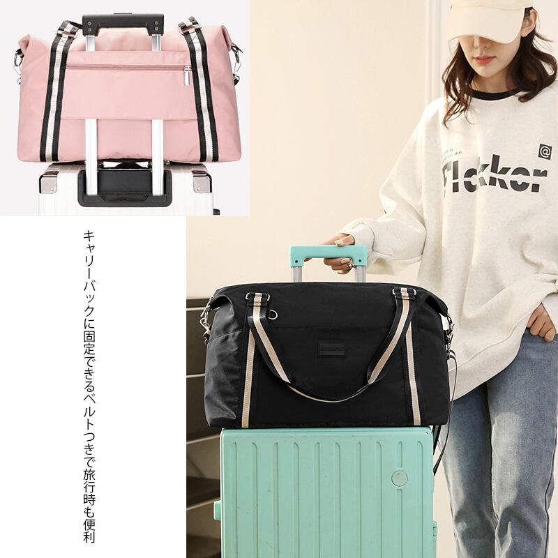 レディース ボストンバッグ 斜め掛け 肩掛け ハンドバッグ ポケット 旅行 鞄 大容量 多機能 撥水 黒