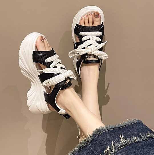 レディース サンダル ミュール オープントゥ 厚底 脚長 美脚 5cm 靴 プラットフォーム カジュアル