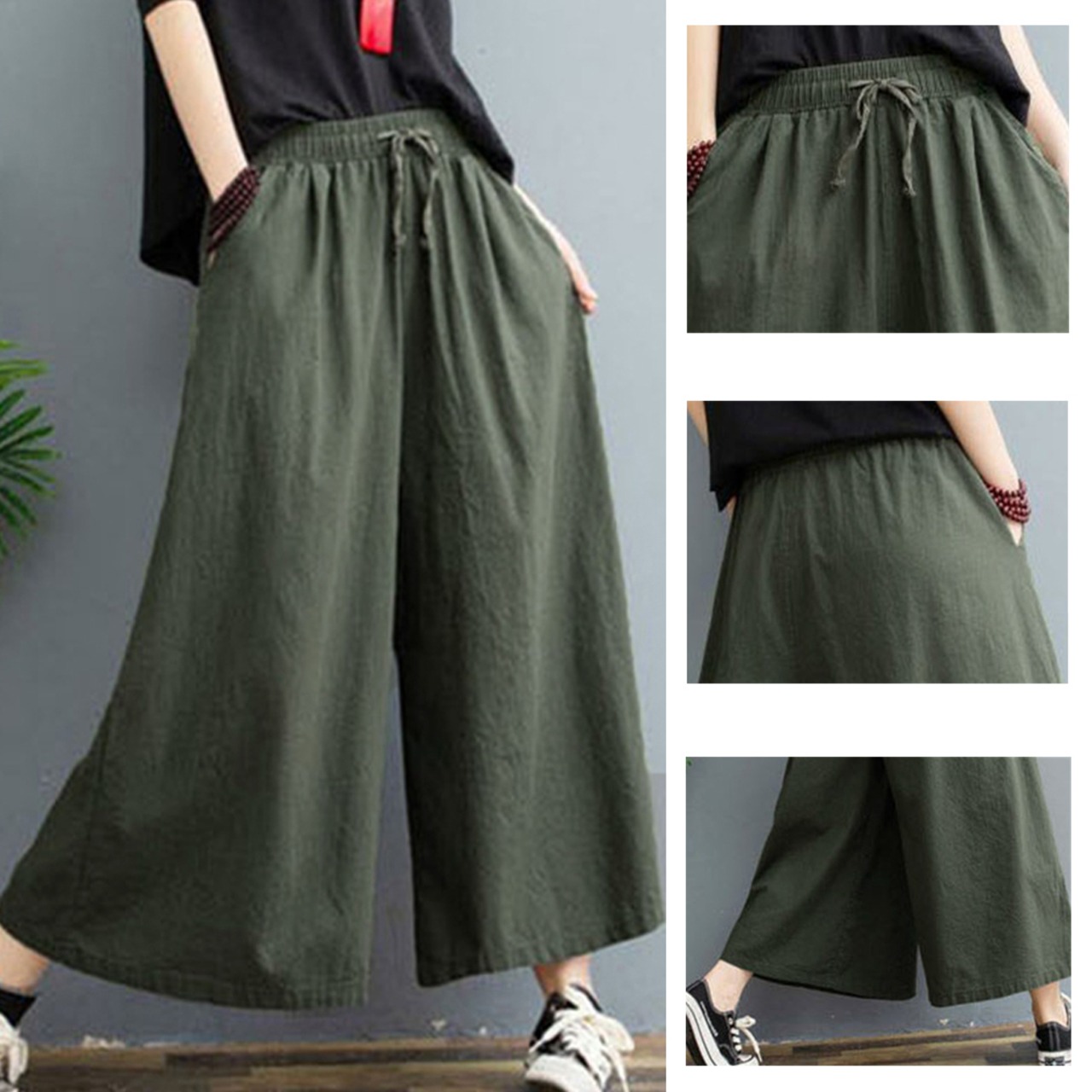 リネンワイドパンツ レデイース ガウチョパンツ スカーチョ ウエストゴム