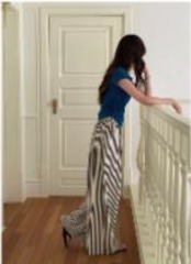 レディース ワイド ボトムス ロング丈 パンツ 2024春夏新作 ボーダー ハイウエスト